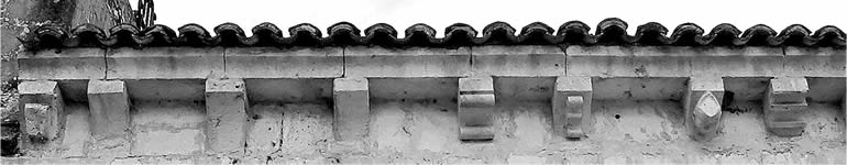 Los canecillos vacíos con un rectángulo, grabado o resaltado, hacen referencia a las cuatro letras del nombre de Dios. En relieve manifiestan su poder, y grabados atraen, o invocan, el nombre de Dios.
