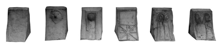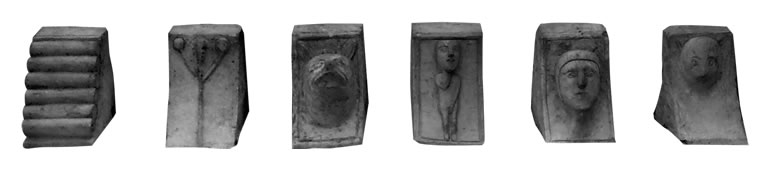 Propósito. 6 canecillos (Alero transversal suroeste, junto a la Portada)