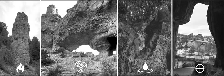 En mi opinión, semejante coincidencia sólo puede ser debida a la gran sensibilidad e intuición de sus constructores, o al hecho de que esta ubicación tan precisa encaja en el arco que se trazaría al conectar cuatro elementos naturales que retratan geológicamente el nombre de Dios en este peculiar enclave. Recordemos que las letras hebreas YHVH simbolizan: mano, ventana, clavo y ventana.